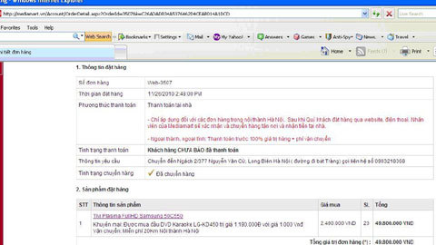 Anh Tuế đã đặt mua một chiếc với tổng giá trị đơn hàng là 2,49 triệu đồng theo đúng hướng dẫn và các quy định về của mua hàng trực tuyến của website này, ngay sau đó anh Tuế được xác nhận là “đơn hàng đã được nhận”.