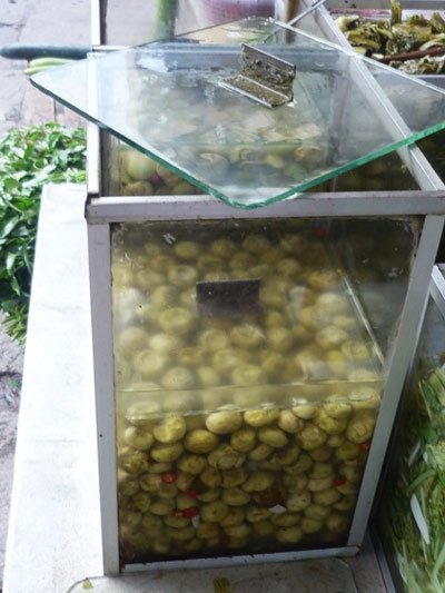 | Hũ cà/dưa muối không hề được che đậy cẩn thận |