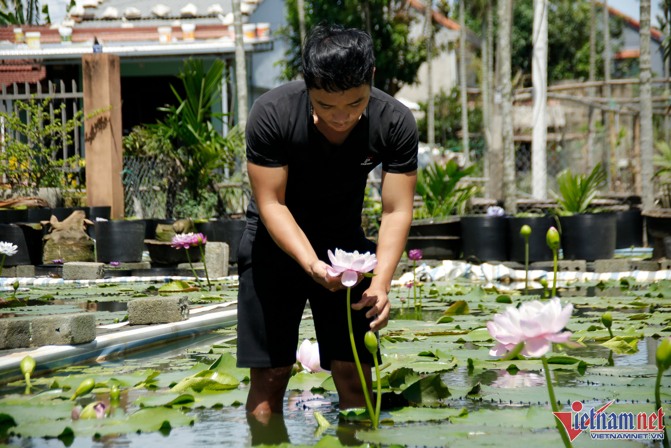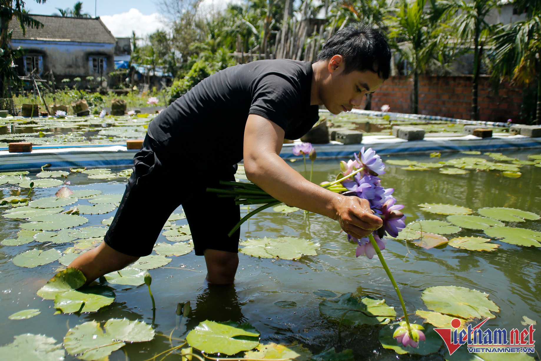Anh Võ Văn Thạnh (27 tuổi, xã Duy Vinh, huyện Duy Xuyên, tỉnh Quảng Nam), đang chuẩn bị từng bông súng trong hồ để thụ phấn. Công việc trồng súng như duyên “trời định” đến với chàng trai 27 tuổi, khi bỏ phố về quê lập nghiệp.