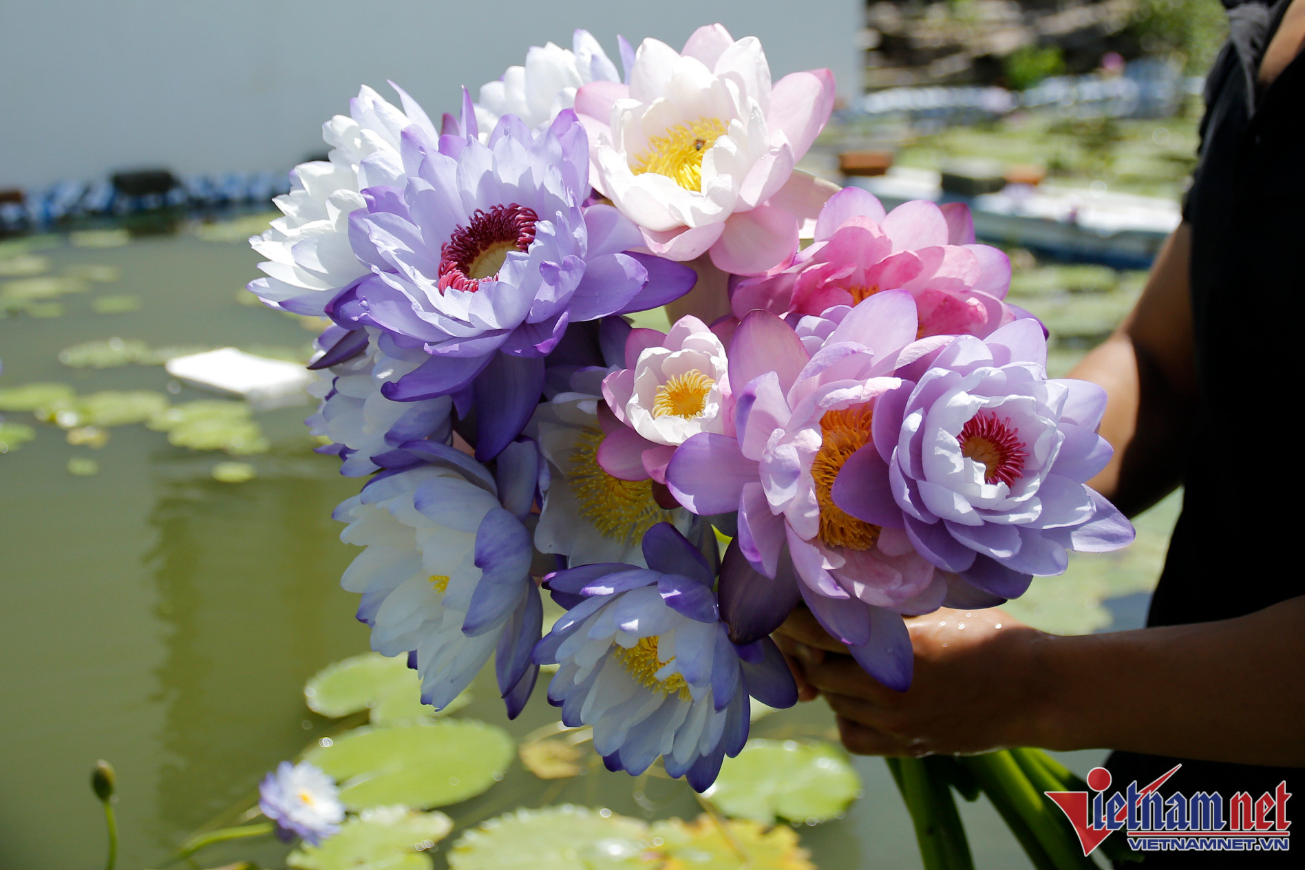 “Mỗi hoa súng có giá bán 8.000 đồng, trung bình mỗi ngày tôi bán hơn 40 hoa, những ngày rằm hay mồng 1 số lượng có thể gấp đôi.