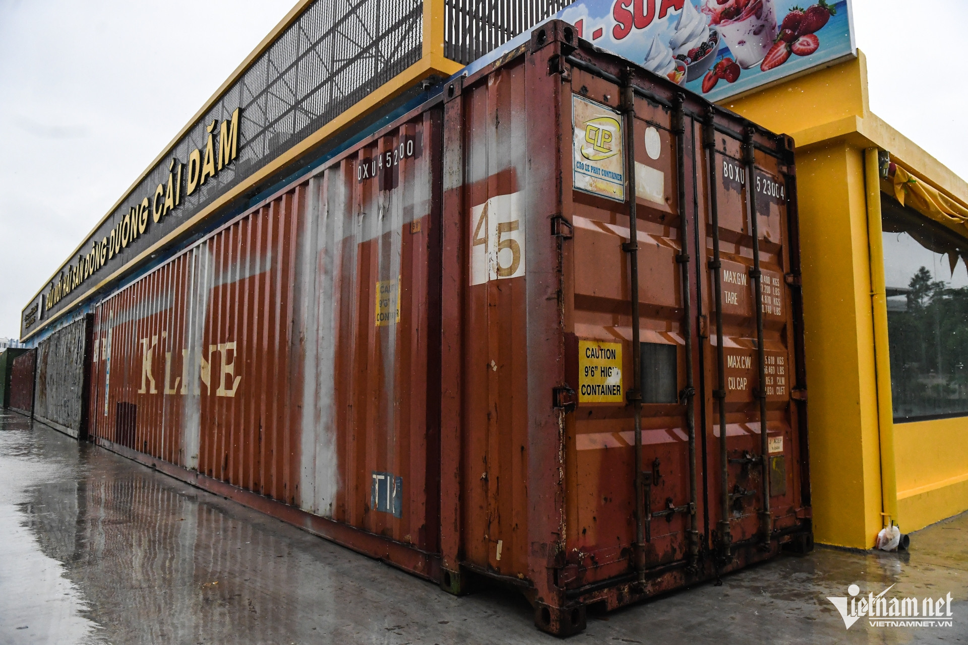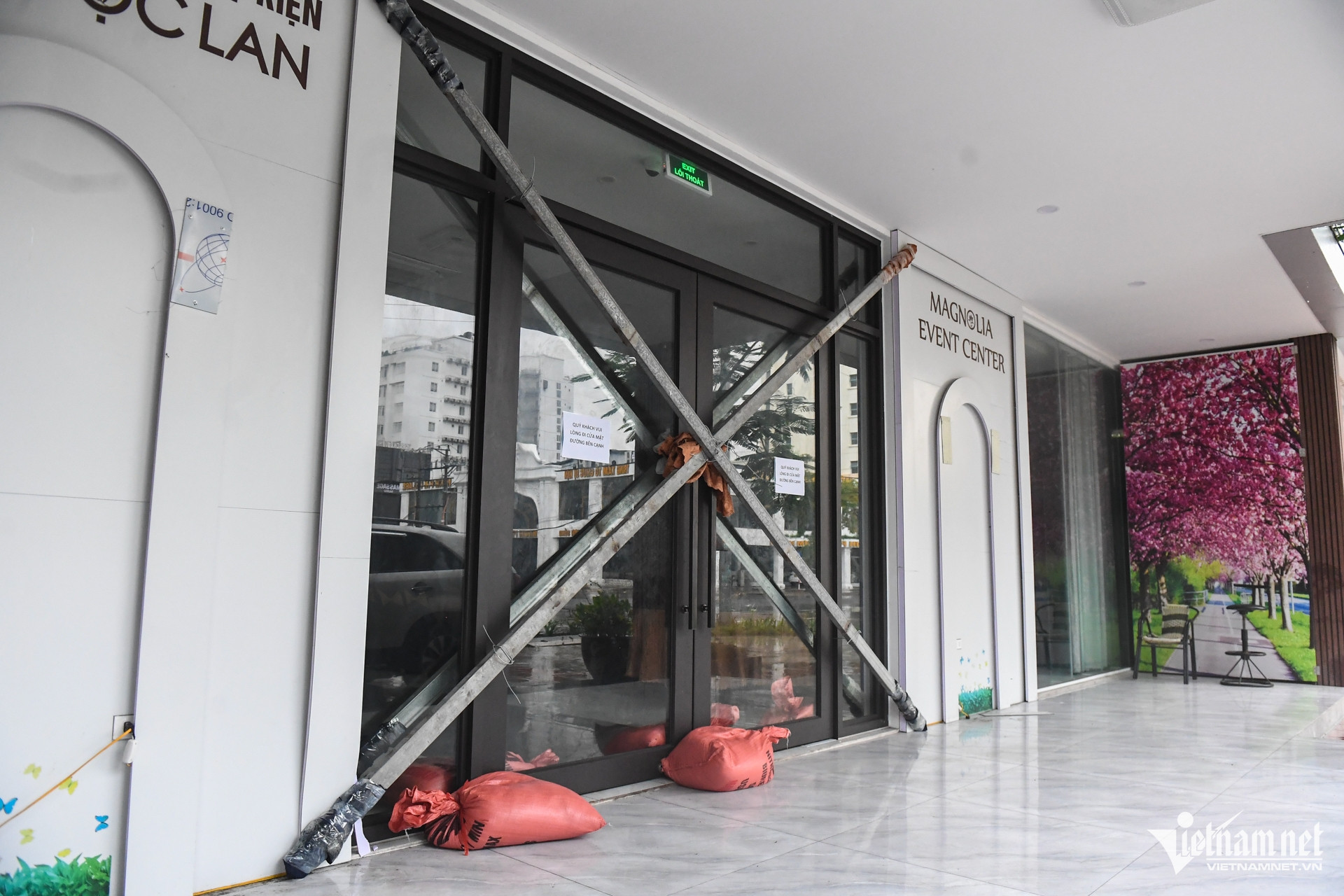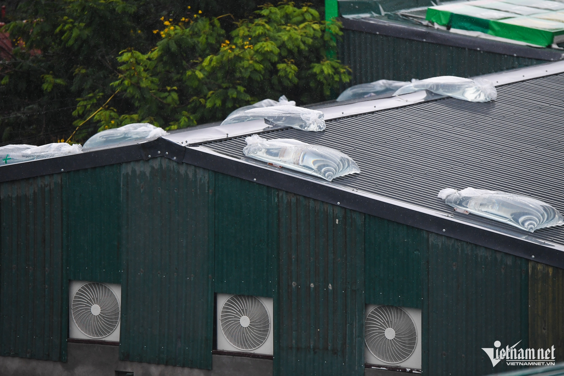 Trước mặt tiền của cửa hàng, ông Nguyễn Thành Luân thuê 9 thùng container cỡ lớn che chắn cửa kính. Những thùng container này được để san sát, chỉ chừa một lối nhỏ vào cửa hàng. Trên mái của cửa hàng, các bao cát nặng đã được chèn ở những vị trí xung yếu. Cả cửa hàng như được mặc một lớp áo giáp kỹ càng trước cơn bão số 3.