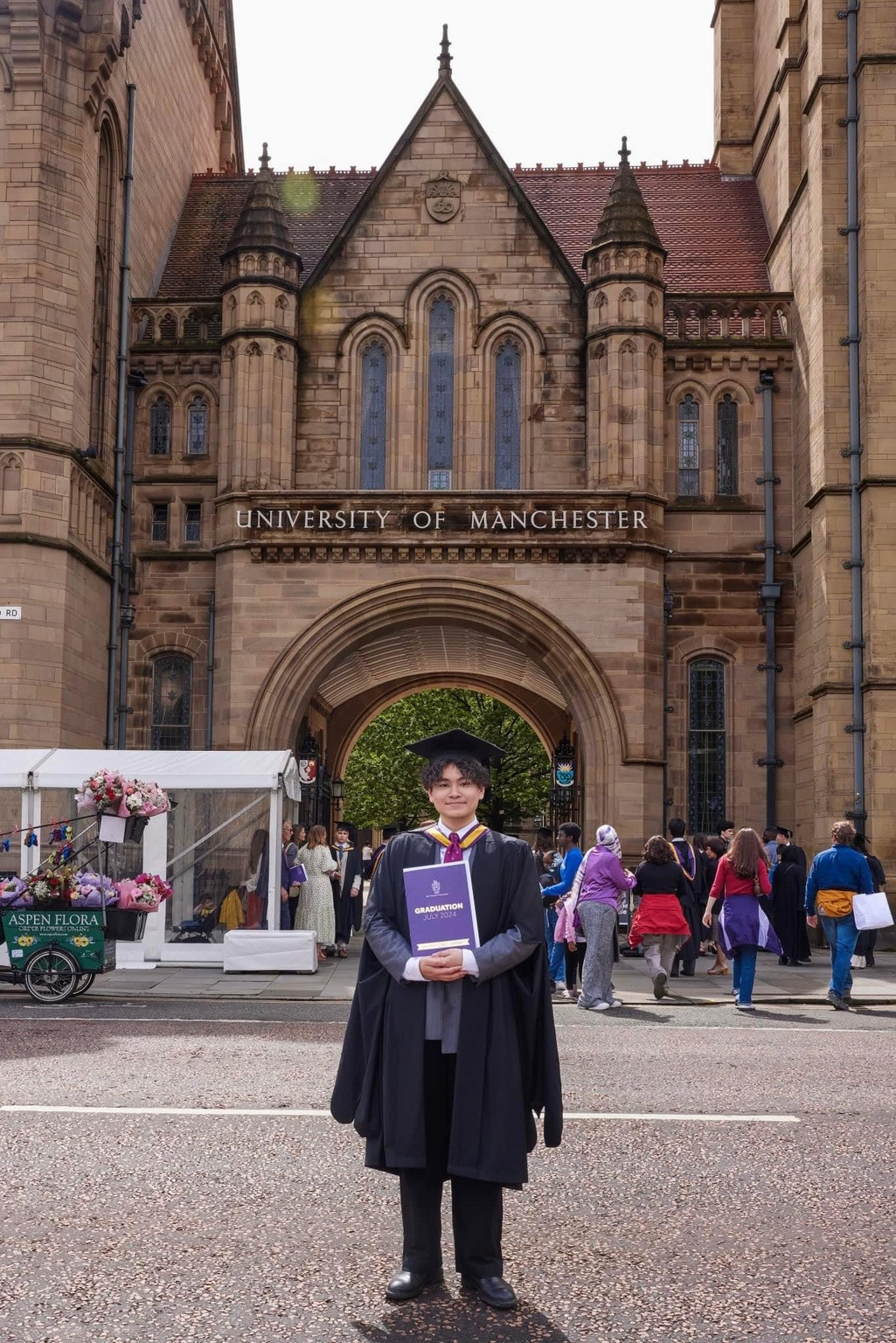 Ngày 10/7, diễn viên Chi Bảo hạnh phúc chúc mừng con trai lớn tốt nghiệp ngành Luật tại trường Đại học Manchester (Anh).