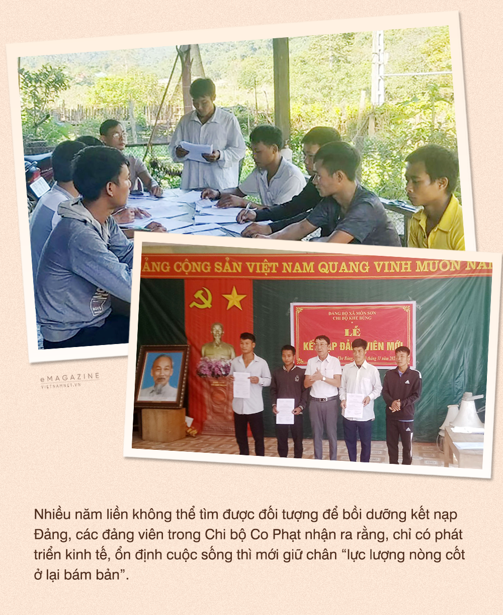Bí thư Đảng ủy xã Môn Sơn Đặng Văn Thân cho biết: “Đối với các chi bộ thôn, bản từ 3-5 năm không phát triển được đảng viên, đảng ủy xã rà soát đưa vào điểm tập trung chỉ đạo. Trước hết phấn đấu phủ sóng trưởng các chi hội, đoàn thể là đảng viên, đích thân các lãnh đạo trong Thường trực, Ban Thường vụ Đảng ủy xã tham gia sinh hoạt tại chi bộ.