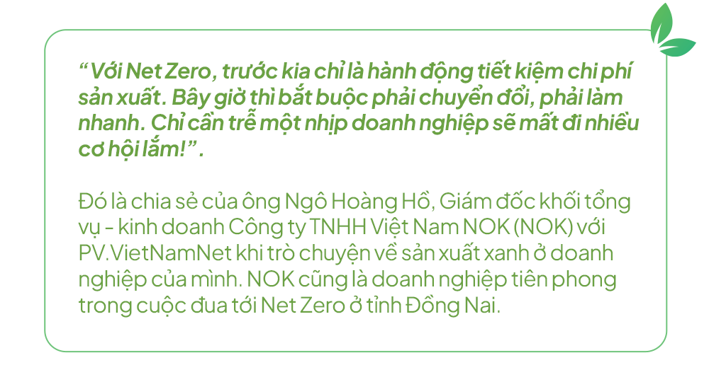 Không chỉ với riêng NOK, theo ông Hồ, muốn chuyển sang con đường sản xuất xanh, ông chủ doanh nghiệp cũng phải đi học. Doanh nghiệp phải cử người tham gia những lớp tập huấn nâng cao kiến thức, nhận thức về sản xuất xanh, năng lượng tái tạo, cách tính toán làm sao giảm lượng phát thải… Đây là những kiến thức cơ bản mà mọi người cần phải nắm và thực hiện. Doanh nghiệp phải chủ động đi trước, không đợi chính quyền địa phương hỗ trợ những điều này.