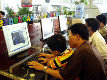 | Một điểm truy cập Internet công cộng. Ảnh: Hoàng Hà |