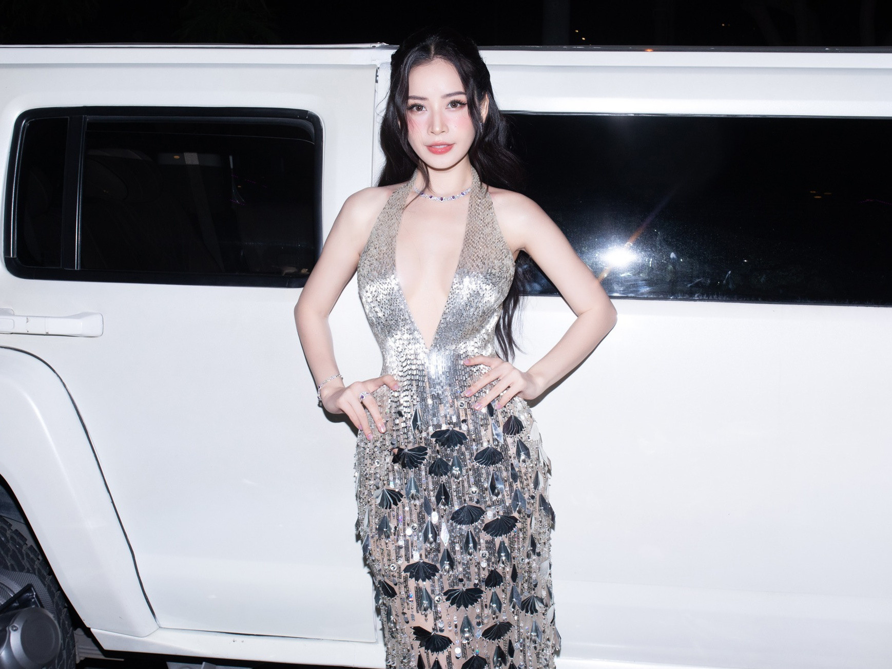 Tại sự kiện, ca sĩ Chi Pu thu hút sự quan tâm bởi độ sexy táo bạo qua chiếc đầm cắt xẻ sâu phần ngực đính sequin lộng lẫy.