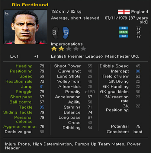 Leadership: Chỉ có ở những cầu thủ chủ chốt từng tuyến. Mặc dù đây là một đặc điểm rất khó để nhận ra nhưng nếu bạn để ý, đây là các cầu thủ thường xuất hiện để can ngăn đồng đội ở những tình huống tranh cãi với trọng tài. Một số cầu thủ có đặc điểm này: Xabi Alonso, Antonio Di Natale và Daniele De Rossi v.v.