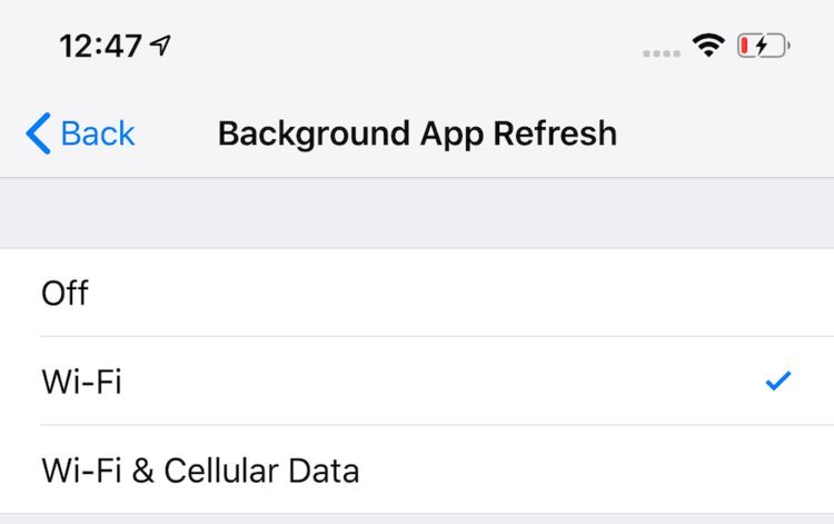 Để làm điều đó, mở Settings > General > Background App Refresh rồi chọn Wi-Fi thay vì Wi-Fi & Cellular Data.