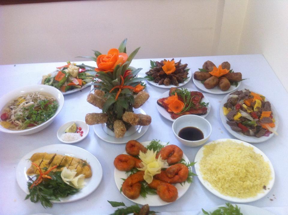Mâm cỗ chay bày trí đẹp mặt do chị Ly làm. |