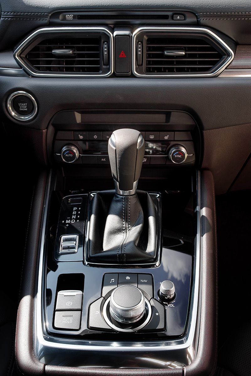 Về nội thất, Mazda CX-8 sử dụng chất liệu da thuộc Nappa cho cảm giác mềm mại và mịn màng. Chất liệu gỗ tự nhiên được sử dụng để trang trí táp lô và cánh cửa xe.