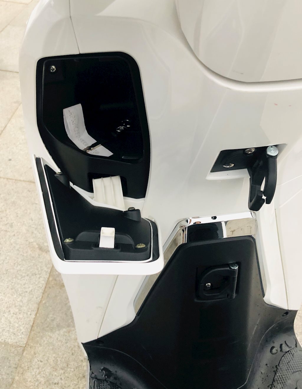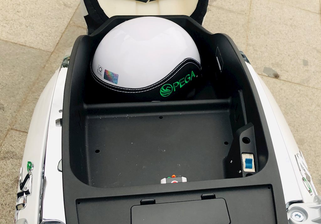 Mẫu xe được trang bị khá nhiều hộc để đồ và móc treo tiện dụng. Cốp xe Pega eSH khá rộng rãi, được trang bị thêm đèn chiếu sáng và cổng USB.