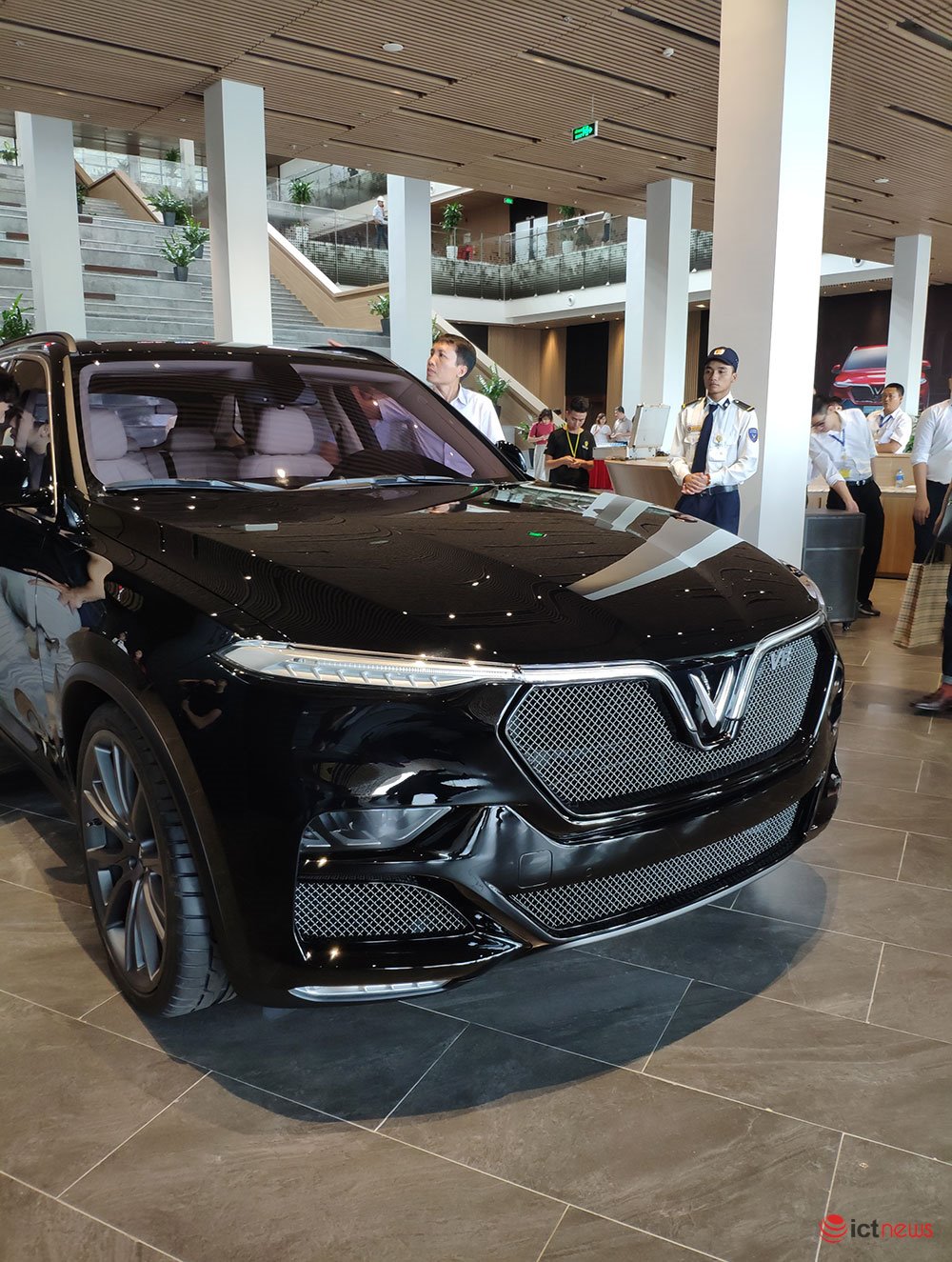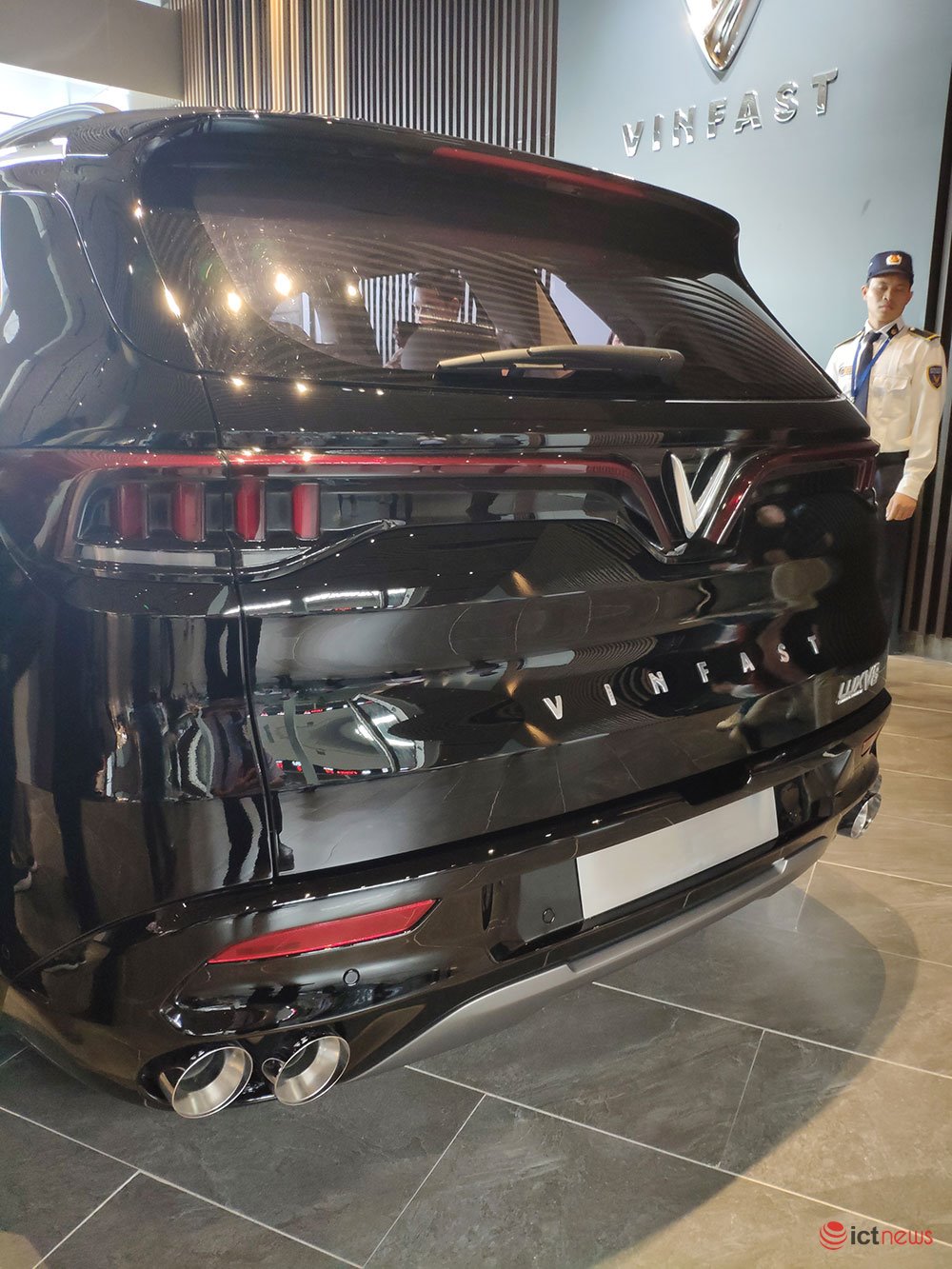 Chiếc SUV Lux V8 tại tổ hợp nhà máy VinFast giống như hình ảnh mẫu xe đã lộ diện vài ngày trước đó trong sự kiện nội bộ của hãng.
