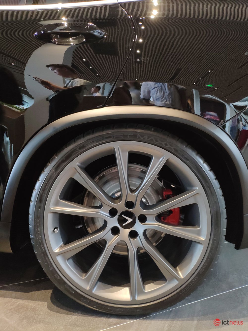 Chiếc xe VinFast Lux V8 xuất hiện tại Việt Nam được phủ sơn đen sang trọng, kết hợp với các chi tiết kim loại màu bạc phủ carbon.