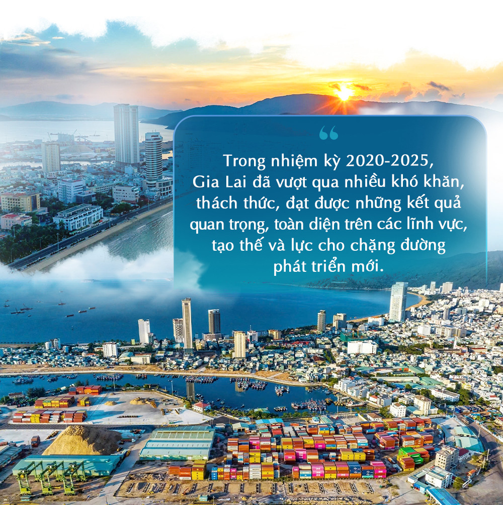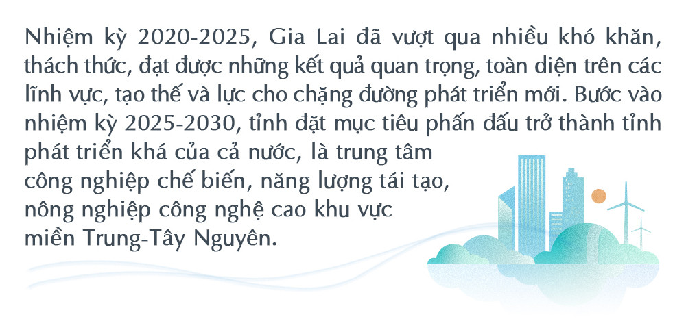 Bước vào nhiệm kỳ 2025-2030, tỉnh Gia Lai đặt ra mục tiêu chung là xây dựng Đảng bộ và hệ thống chính trị trong sạch, vững mạnh; bảo đảm quốc phòng, an ninh và an sinh xã hội; phát huy truyền thống, bản sắc văn hóa, sức mạnh đại đoàn kết toàn dân, ý chí, khát vọng vươn lên; đẩy mạnh phát triển khoa học, công nghệ, đổi mới sáng tạo, chuyển đổi số, chuyển đổi xanh, kinh tế tư nhân; xây dựng tỉnh Gia Lai phát triển nhanh, bền vững, trở thành trung tâm công nghiệp chế biến, chế tạo, năng lượng tái tạo, nông nghiệp công nghệ cao, dịch vụ, du lịch, chip bán dẫn, trí tuệ nhân tạo (AI); phấn đấu đưa tỉnh Gia Lai trở thành tỉnh phát triển khá và cùng với cả nước vững vàng bước vào kỷ nguyên phát triển mới.