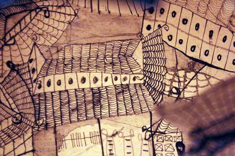 Vũ Kim Thư đã kết hợp giấy xuyến chỉ của Việt Nam và giấy washi (một loại giấy truyền thống của Nhật Bản), nhưng trong đó đến 99% là giấy Nhật. Loại giấy washi này đặc biệt mỏng và dai. Không biết các nghệ nhân Nhật Bản làm như thế nào mà chúng không hề bị thấm nước hay biến đổi khi chị dùng mực nho để vẽ lên.