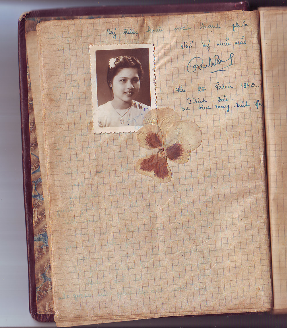 | Trang lưu bút của một người bạn thân viết tặng bà Lê Thị Tý năm 1942 (Ảnh: Gia đình cung cấp) |