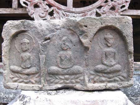 | Viên gạch Tam Thế Phật. Ảnh Cao Huy Hóa |