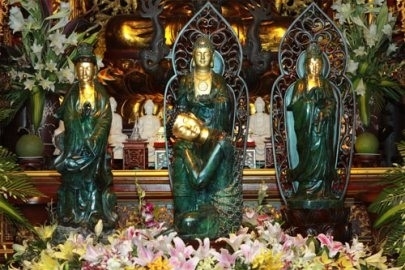 Trong những ngày vừa qua, hàng ngàn phật tử từ nhiều nơi đã náo nức đổ về chùa Sùng Đức, quận Thủ Đức, TP HCM để chiêm ngưỡng bốn bức tượng Phật bằng ngọc đang được trưng bày tại ngôi chùa này. Bốn bức tượng là tượng Phật Thích Ca Mâu Ni, Quán Thế Âm từ bi phổ độ, Quán Thế Âm cưỡi rồng và tượng Phật A Di Đà.