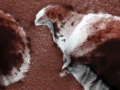 Bức ảnh cho ta cảm giác cứ như ai đó đã tạc hình một con chim bồ câu lên cát trên sao Hỏa. Tuy nhiên, đây là hình ảnh chụp các đụn cát hình thành tự nhiên ở vùng cực bắc của hành tinh đỏ, do tàu thăm dò sao Hỏa MRO của Cơ quan hàng không vũ trụ Mỹ (NASA) ghi lại được và công bố hồi tháng 4.