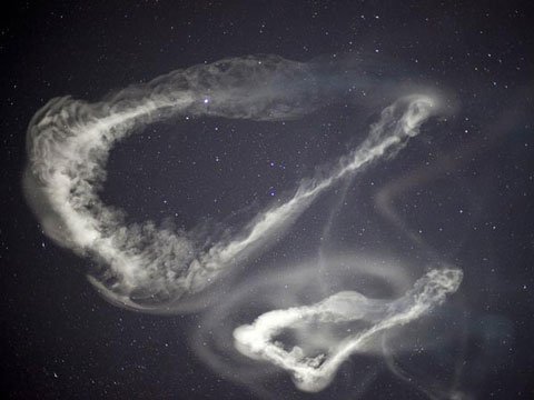 Các cuộn mây trông như những vòng khói nổi bật trên nền sao - sản phẩm của một vụ phóng tên lửa nghiên cứu của NASA.