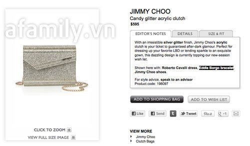 Clutch dạng hộp nằm trong BST Xuân/ Hè 2011 của Roberto Cavalli, hiện chúng có giá 2.549 $ ( khoảng 53 triệu VNĐ).
