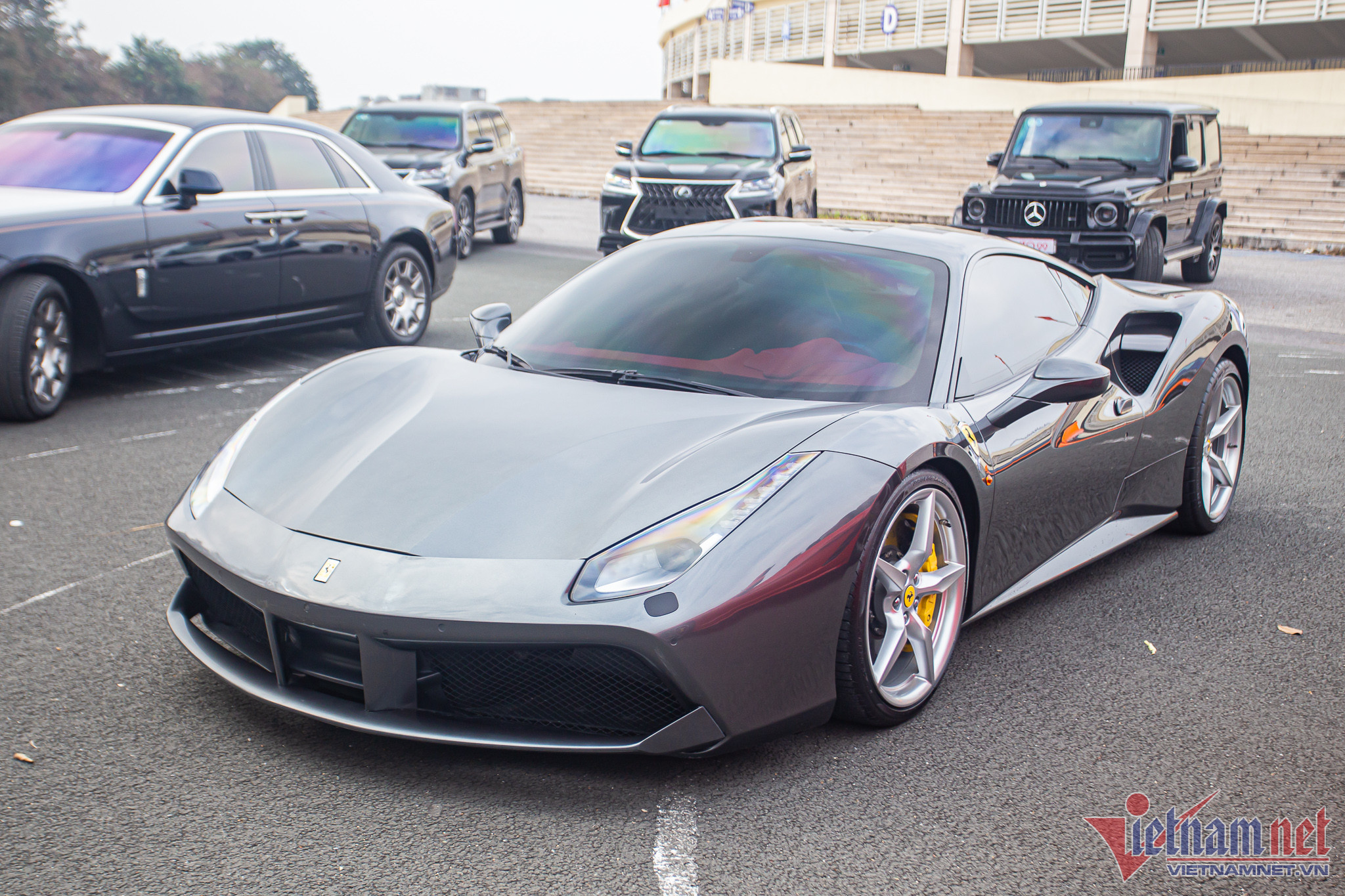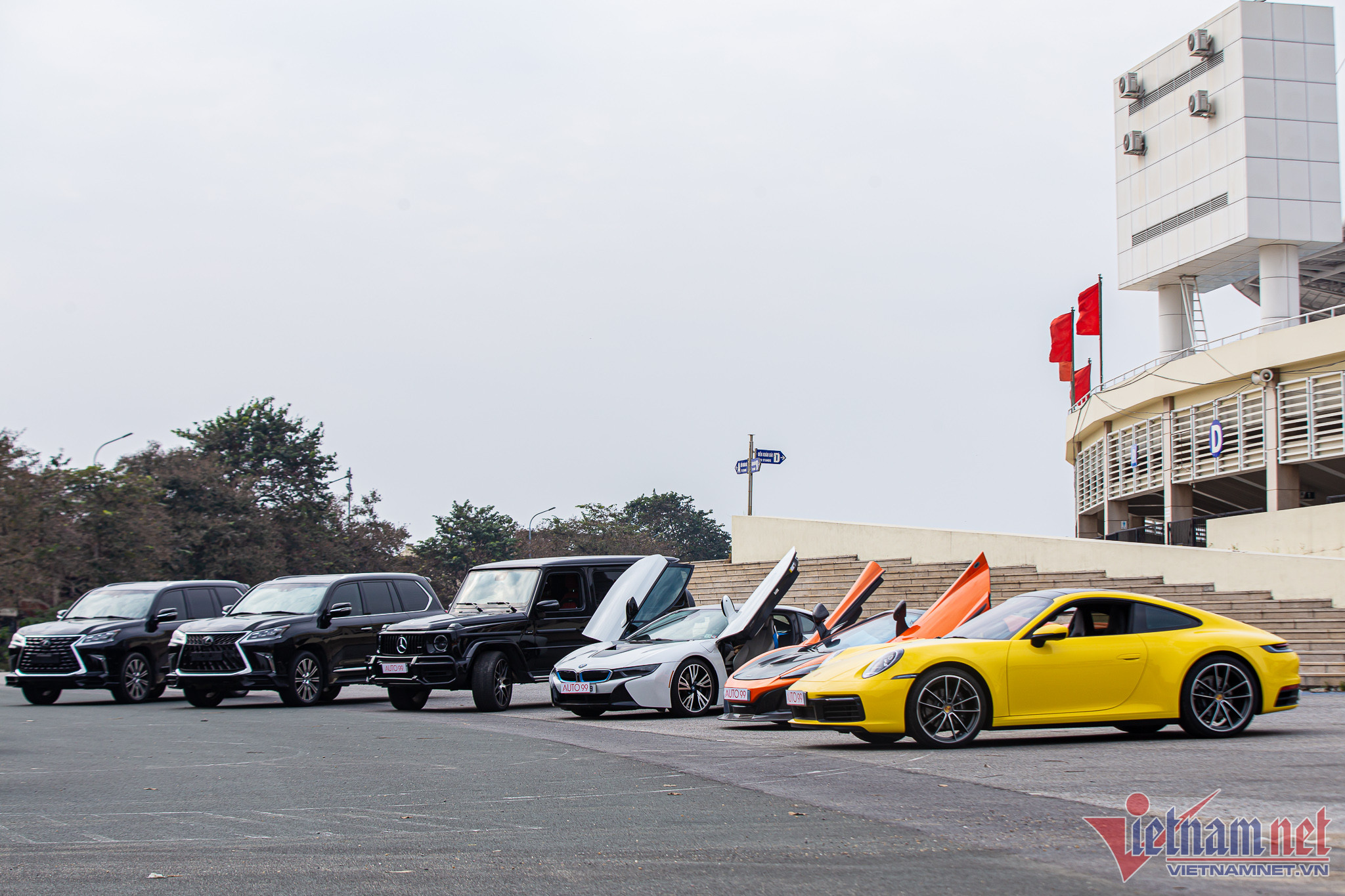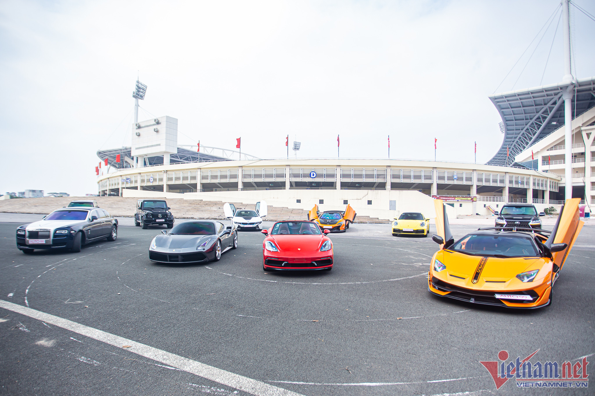 Chiều ngày 11/12, một đơn vị kinh doanh xe có tiếng tại Hà Nội đã trưng bày dàn siêu xe, xe sang tại Sân vận động Quốc gia Mỹ Đình, thu hút sự quan tâm của nhiều người đi qua.