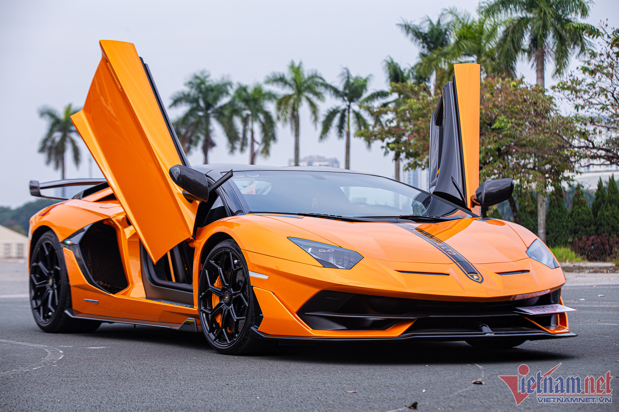 Tâm điểm trong dàn xe là chiếc siêu xe Lamborghini Aventador SVJ Roadster, là một trong ba chiếc SVJ mui trần tại Việt Nam. Siêu xe này từng có thời gian “làm dâu” tại Vũng Tàu trước khi bán ra Hà Nội. Giá bán ở thời điểm xe đổi chủ được đồn đoán ở mức 35 tỷ đồng.