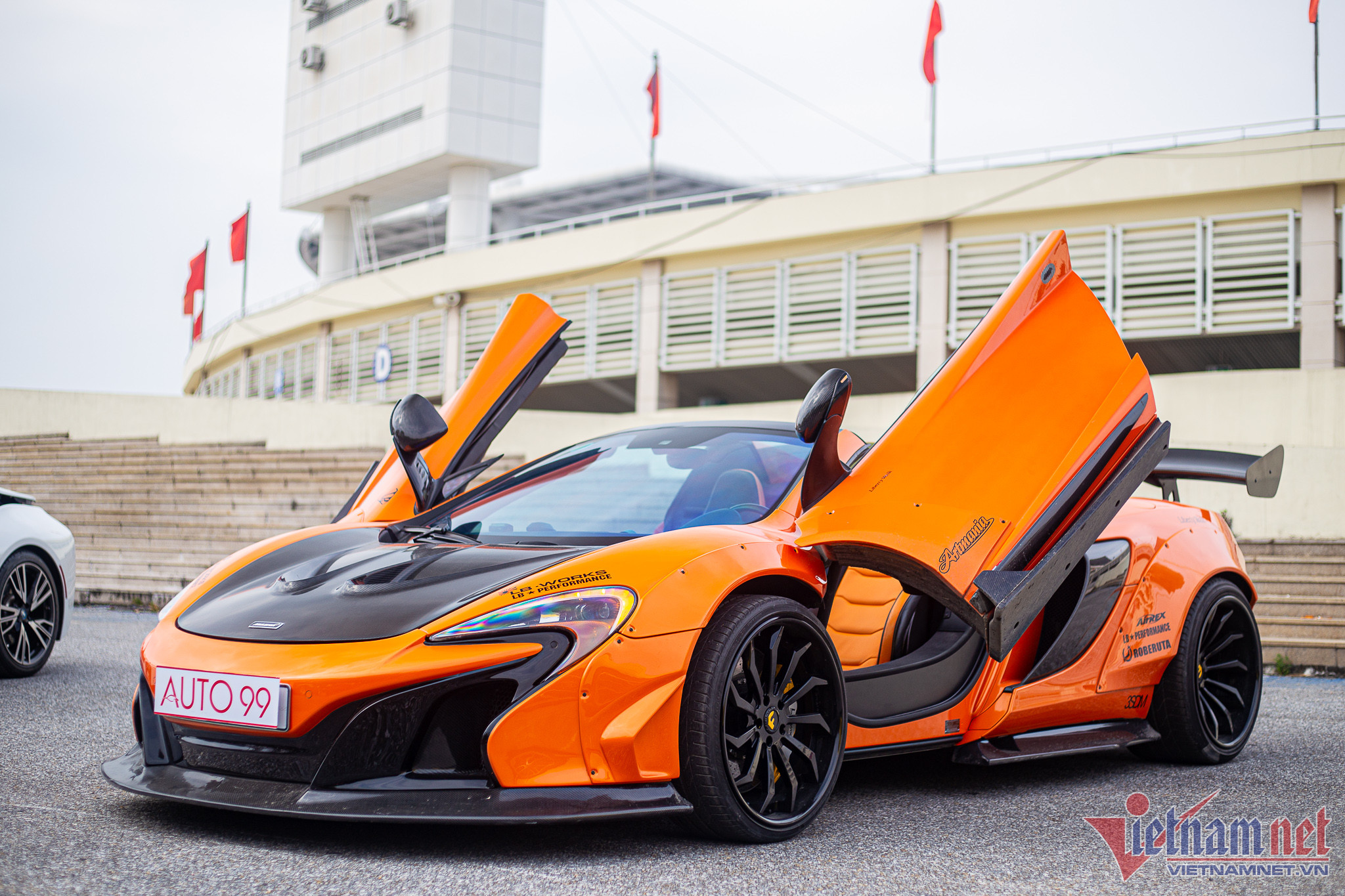 Siêu xe Anh Quốc McLaren 650S Spider nổi bật không kém siêu xe Italia màu cam nhờ gói độ thân rộng của thương hiệu Liberty Walk.