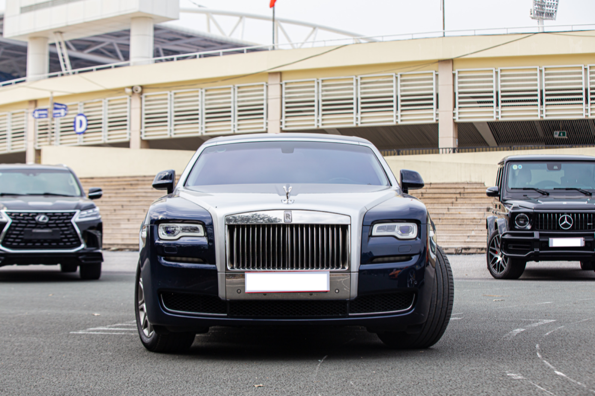 Chiếc Rolls-Royce Ghost Series II đời 2011 hiện được chào bán với giá hơn 8 tỷ đồng. Ngoại thất xe sử dụng tông màu xanh dương chủ đạo cùng màu bạc trên nắp ca-pô tạo điểm nhấn.