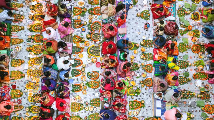 Các tín đồ đạo Hindu ngồi quây quần cạnh nhau tại đền thờ để dự lễ kỷ niệm Rakher Upobash ở Dhaka, Bangladesh