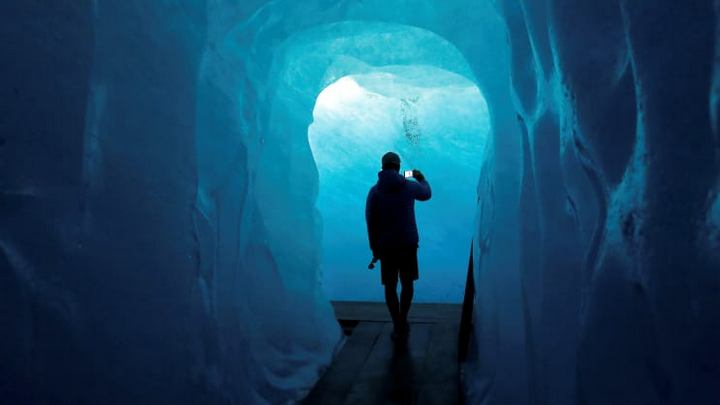 Hầm băng dài 100 mét bên trong sông băng Rhone tại Valais, Thụy Sỹ