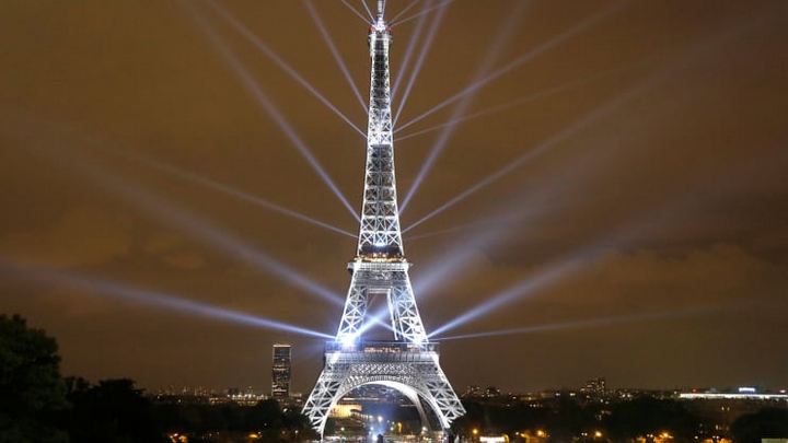 Tháp Eiffel ở thủ đô Paris tỏa sáng trên bầu trời đêm