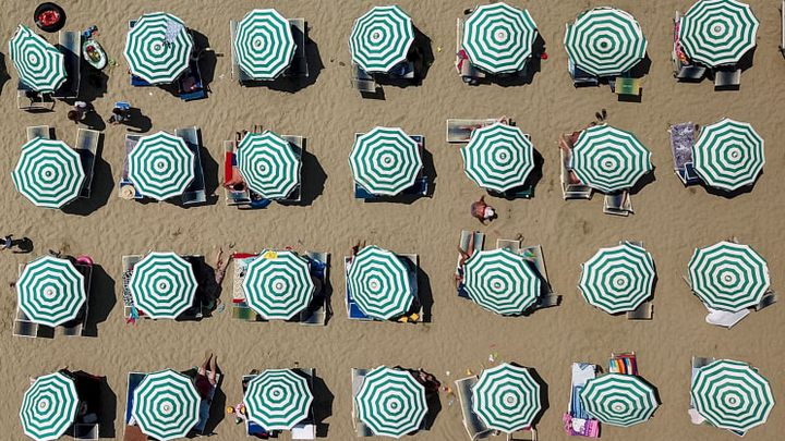 Những chiếc ô che độc đáo trên bãi biển ở thành phố Durrës, Albania, sát biển Adriatic