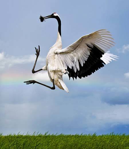 Giải Nhì của thể loại này đã thuộc về nhiếp ảnh gia Huajin Sun với bức ảnh một con sếu đầu đỏ đang nhảy múa trên không.