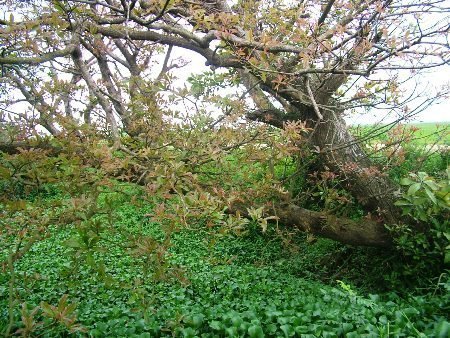 | Gốc của cây lộc vừng này giống thân hình một chú trâu đang nằm |