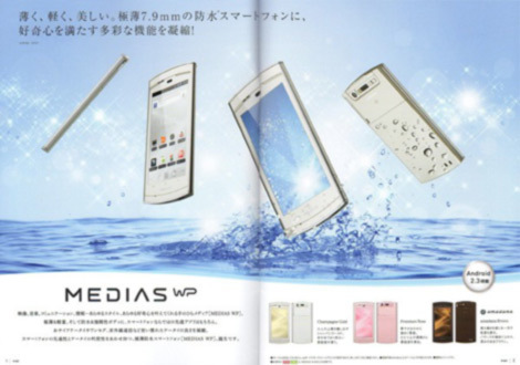 Với tên gọi NEC MEDIA WP N-06C, mẫu dế này sẽ đáp xuống mạng NTT DoCoMo trong vòng 2 tháng tới. Bất chấp thân hình mình hạc xương mai, thiết bị lại chứa đầy sức mạnh với vi xử lý Qualcomm MSM8255 tốc độ 1GHz, màn hình LCD 4-inch, độ phân giải 845 x 480pixel, RAM 512MB. Máy cài đặt hệ điều hành Android 2.3 và sử dụng thẻ nhớ microSDHC để tăng dung lượng lưu trữ. Máy có thể kết nối Wi-Fi 802.11b/g/n và Bluetooth, chụp hình bằng máy ảnh số 5 chấm, quay được video 720p.