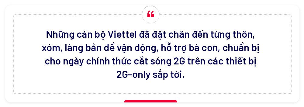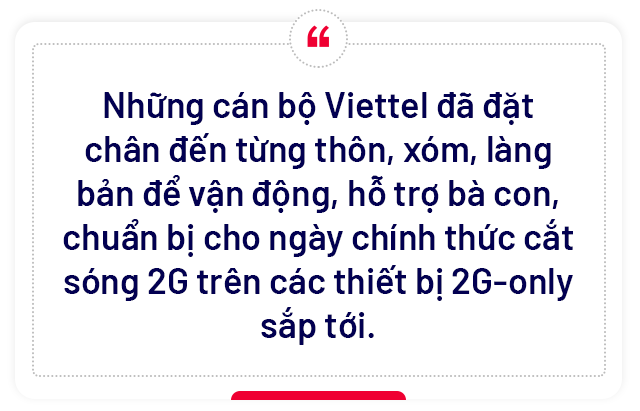 Giống như tại Lào Cai, nhiều chương trình, hoạt động đã được triển khai trên khắp 63 chi nhánh tỉnh, thành của Tổ quốc. Những cán bộ Viettel đã đặt chân đến từng thôn, xóm, làng bản để vận động, hỗ trợ bà con, chuẩn bị cho ngày chính thức cắt sóng 2G trên các thiết bị 2G Only sắp tới.