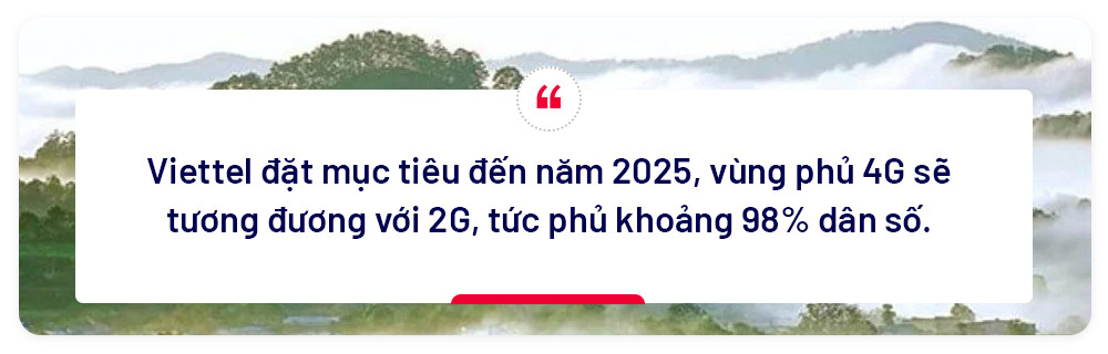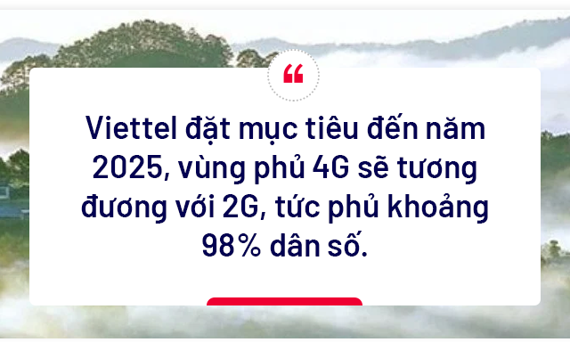 Viettel đặt mục tiêu đến năm 2025, vùng phủ 4G sẽ tương đương với 2G, tức phủ khoảng 98% dân số. Tập đoàn Viettel cho biết sẽ tiếp tục lắp đặt thêm 7.000 trạm 4G mới.