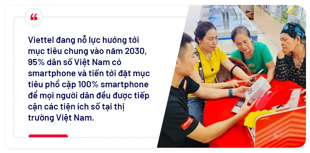 Trong tương lai, Viettel đang nỗ lực hướng tới mục tiêu chung vào năm 2030, 95% dân số Việt Nam có smartphone và tiến tới đặt mục tiêu phổ cập 100% smartphone để mọi người dân đều được tiếp cận các tiện ích số tại thị trường Việt Nam.
