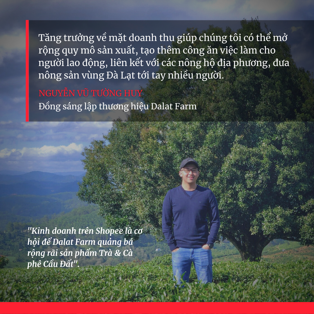 Theo anh Nguyễn Vũ Tường Huy, đồng sáng lập thương hiệu Dalat Farm, nhờ các khoá học trực tuyến từ học viện Shopee Uni, cộng đồng Shopee Captain mà Dalat Farm hiểu thêm về hành vi khách hàng, tối ưu quy trình vận hành và đạt doanh thu kỳ vọng. Các khó khăn thương hiệu vấp phải trong quá trình tạo gian hàng, quản lý sản phẩm, sử dụng các công cụ khuyến mãi và quảng cáo, xây dựng chiến lược sản phẩm cũng luôn có đội ngũ Shopee tham vấn.