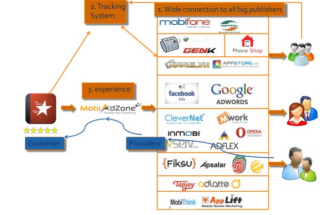 Có thể định nghĩa MobiAdzone là một kênh đa kênh, kết nối hầu hết các kênh chính từ Facebook, Wapmaster, Adnetwork, AdLatte … trong đó có tích hợp hệ thống đo kiểm tracking tool của các nhà cung cấp đo kiểm quốc tế để nhận biết kênh hiệu quả nhất và tối ưu chiến dịch cho từng game hay ứng dụng. Nhà quảng cáo chỉ việc tập trung vào việc làm ra sản phẩm tốt. Việc phân phối sản phẩm của nhà quảng cáo MobiAdzone hoàn toàn có thể đảm nhiệm.