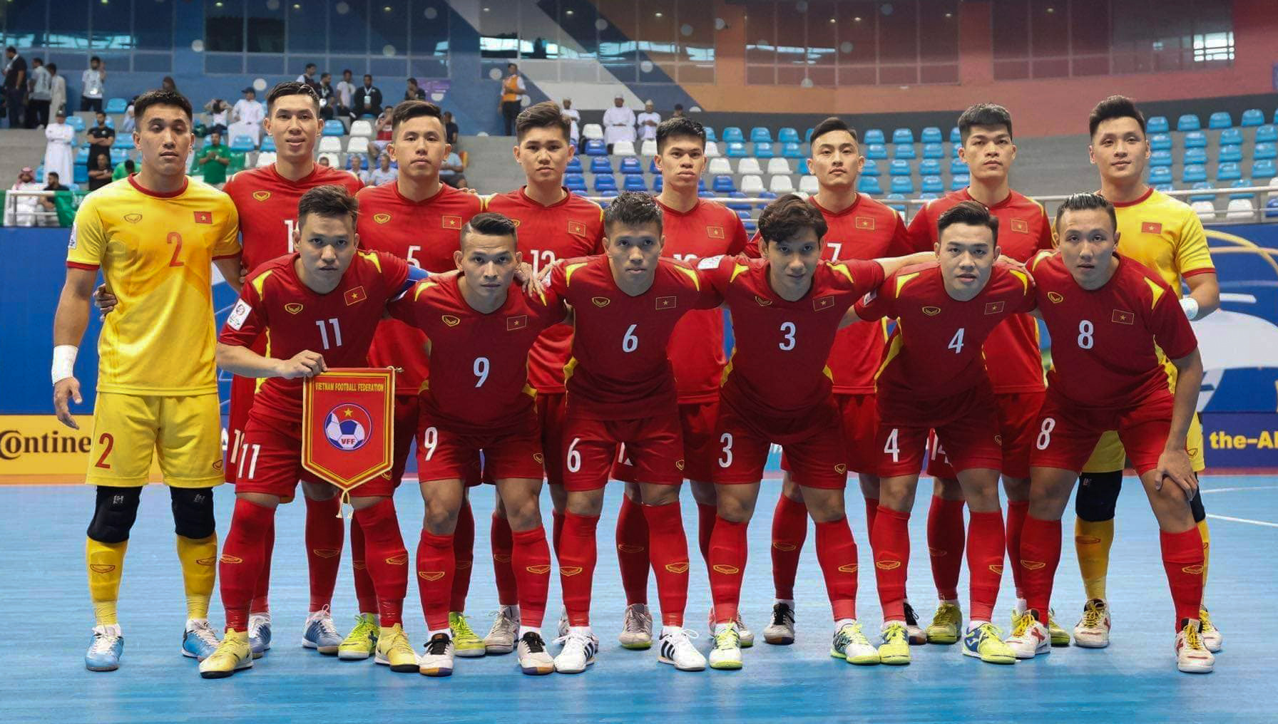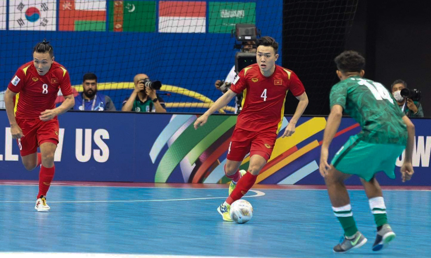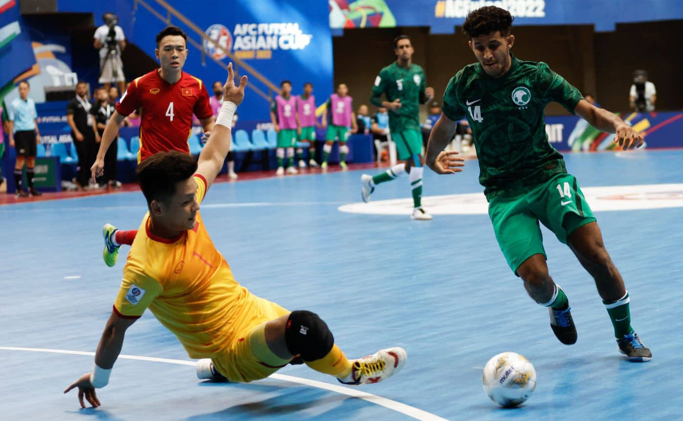 Sau trận thắng tưng bừng 5-1 trận ra quân trước Hàn Quốc, tuyển futsal Việt Nam quyết tâm có thêm chiến thắng khi tiếp Saudi Arabia - đội tạo nên cú sốc khi đánh bại Nhật Bản 2-1Trước trận đấu, tuyển futsal Việt Nam chịu sức ép lớn khi Nhật Bản thắng đậm Hàn Quốc 6-0. Kết quả này buộc đội bóng áo đỏ phải giành trọn 3 điểm để không phải rơi vào tình cảnh khó khăn bởi trận cuối gặp Nhật BảnTuyển futsal Việt Nam nhập cuộc đầy quyết tâmĐoàn quân của HLV Diego Giustozzi đã nghiên cứu đối thủ rất kỹLối chơi tấn công đa dạng giúp tuyển futsal Việt Nam kiểm soát được thế trận và tạo ra nhiều cơ hội nguy hiểm hơnNgười hâm mộ Việt Nam không phải chờ đợi lâu khi đến phút thứ 8, đoàn quân của ông Diego Giustozzi đã có bàn thắng khai thông thế bế tắc. Đoàn Phát căng ngang rất chính xác để Anh Duy đệm bóng, ghi bàn thắng cho đội nhàHồ Văn Ý tiếp tục có một trận đấu xuất sắc, có những tình huống cứu thua ngay trên vạch vôiCác cầu thủ áo đỏ chơi lăn xả. Trong hiệp 2, tuyển futsal Việt Nam tạo thế chủ động hoàn toàn. Phút 28, Minh Trí và đồng đội có bàn thắng thứ hai vào lưới Saudi Arabia. Đó là tình huống Đoàn Phát lại thực hiện cú bấm bóng gần giữa sân đưa bóng đi thẳng vào lưới đối thủSaudi Arabia đã tạo áp lực đáng kể lên phần sân của tuyển futsal Việt Nam. Trong thế trận chủ động ấy, đoàn quân của HLV Andreu Alvarez có bàn rút ngắn 1-2Sau một pha giải vây từ tình huống hãm thành bằng chiến thuật power-play của đối thủ, Minh Tri tung cú vô lê ngay trước vạch cấm địa của tuyển futsal Việt Nam, đưa bóng đi thẳng vào khung thành đã bỏ trống của Saudi Arabia để ấn định chiến thắng 3-1. Tuyển futsal Việt Nam có 2 trận thắng liên tiếp ở bảng D, có cơ hội rất lớn giành vé đi tiếpNiềm vui của các CDDV Việt Nam.