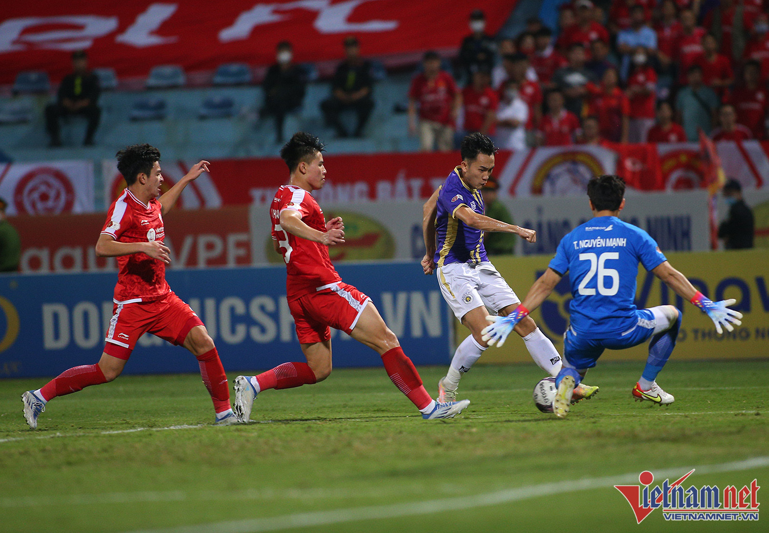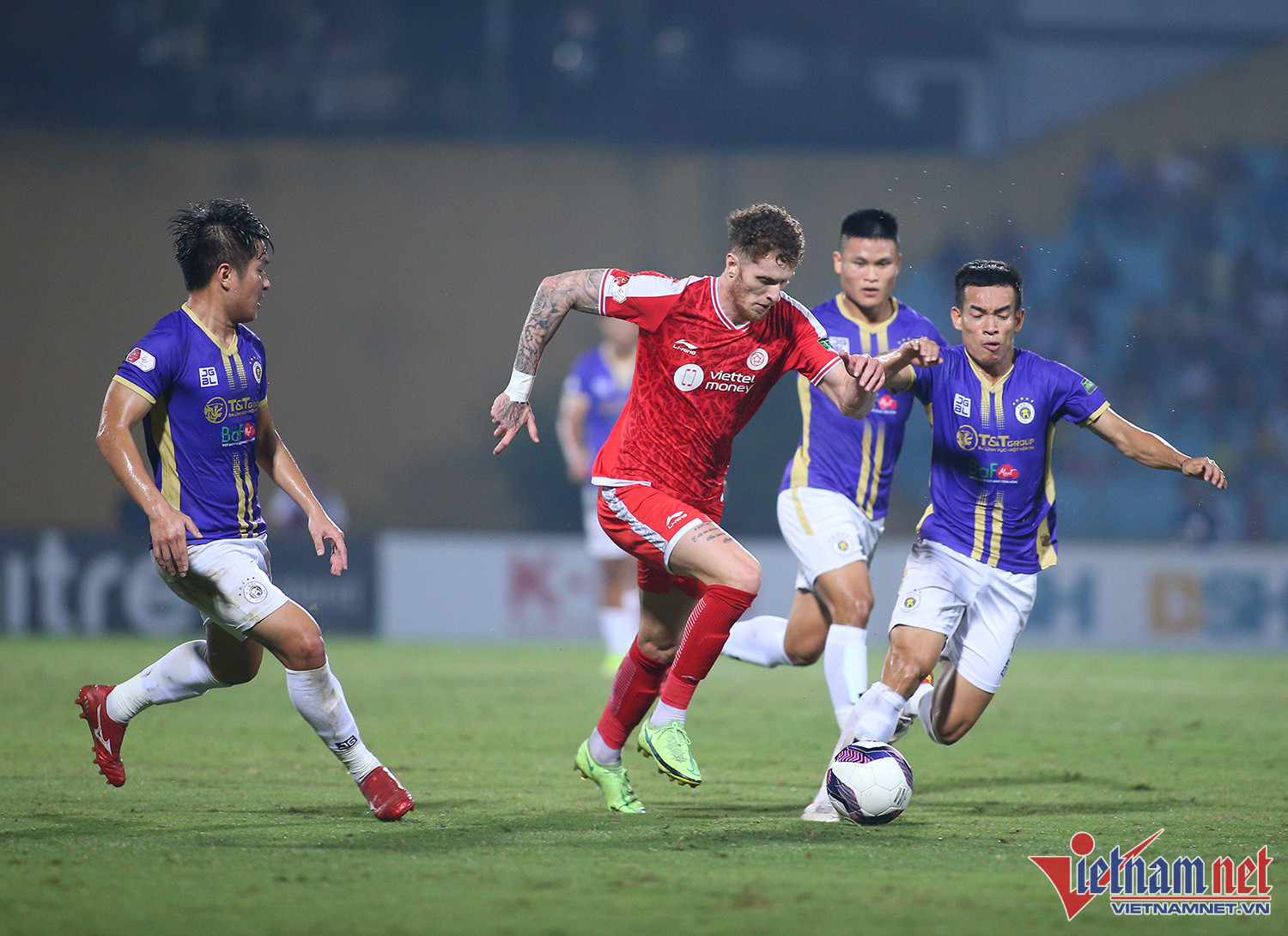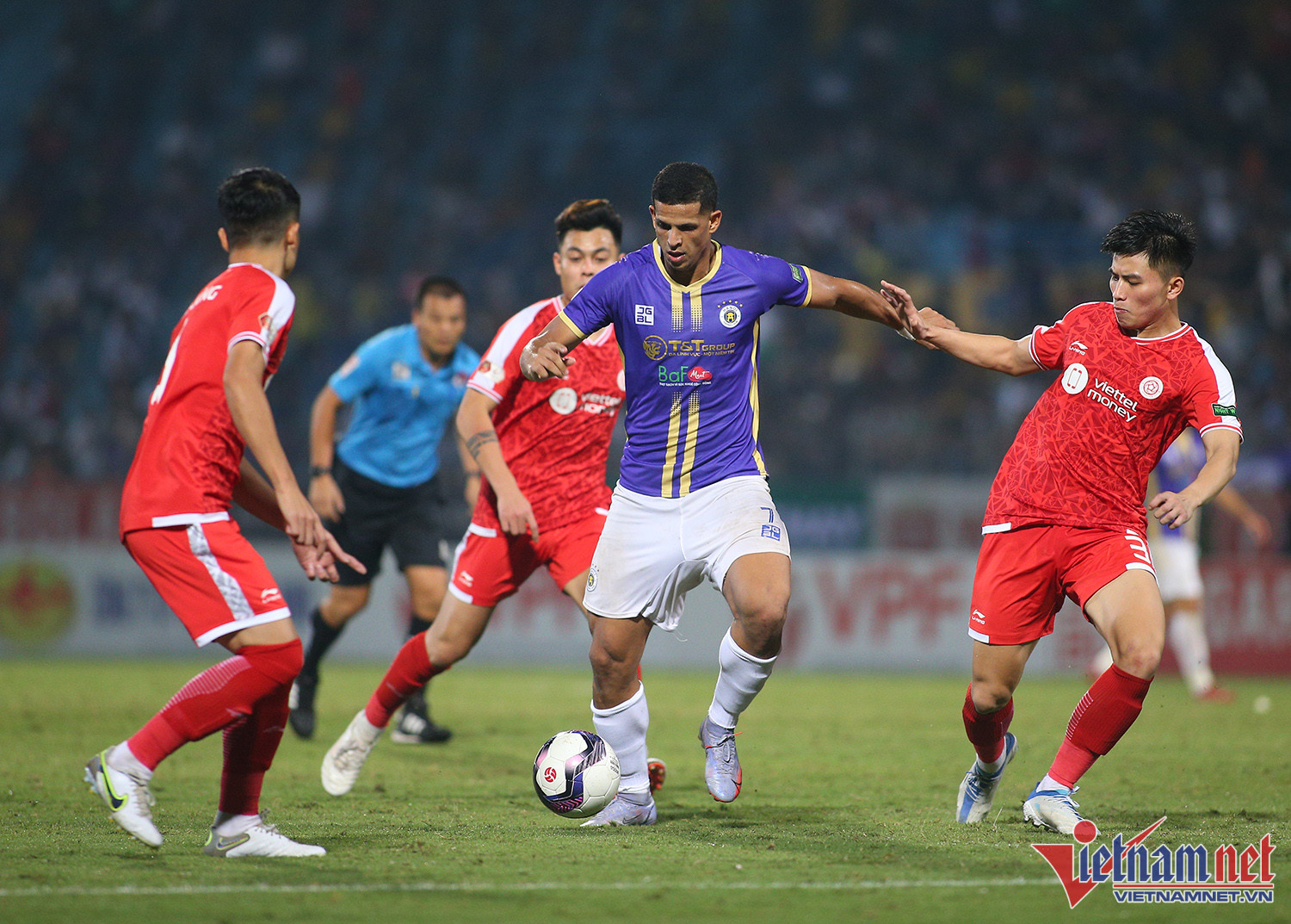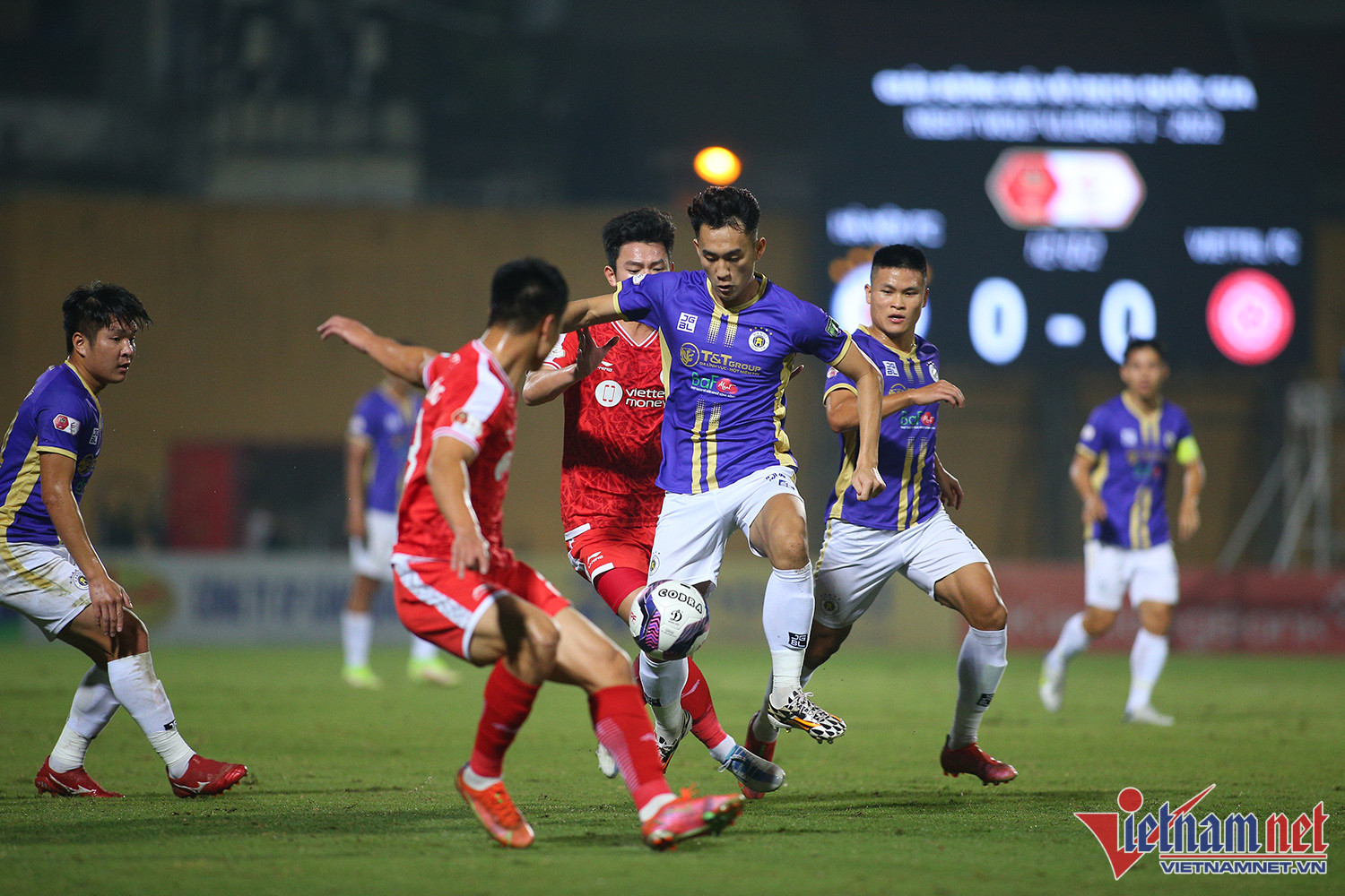 Bị Hải Phòng chiếm ngôi đầu bảng, Hà Nội phải thắng Viettel ở trận derby vòng 24 Night Wolf V-League 2022 để trở lại ngôi đầu. Đây là trận đấu rất khó khăn với đội bóng Thủ đô khi họ vắng hai trụ cột quan trọng là Văn Quyết và Văn HậuThực tế Viettel chơi rất có nét sau khi nhập cuộc. Đội bóng hậu duệ Thể công có ít nhất 2 cơ hội rất nguy hiểm trong hiệp 1 nhưng không thể mở tỷ sốTrong khi đó Hà Nội cũng chơi tấn công cống hiến nhưng gặp khó khăn trước hàng phòng ngự được tổ chức tốt của ViettelHoàng Đức với một pha dứt điểm căng trong hiệp 1Ngoại binh Lucao của Hà Nội có một trận đấu rất đáng khen ngợi. Tiền đạo người Brazil liên tục có những pha đột nhập khu vực cấm của khung thành Nguyên MạnhPhút 60, Lê Xuân Tú đi bóng nỗ lực trong vòng cấm Viettel rồi tạt ngang để Lucao dễ dàng đệm bóng vào lưới trốngBàn mở tỷ số tạo bước ngoặt cho trận đấuLucao ăn mừng cùng các đồng đội. Đây có thể là một trong những bàn thắng đáng nhớ nhất của anh ở mùa giải năm nay nếu Hà Nội vô địchLucao chơi rất ấn tượng ở những phút cuối trậnMột pha ngả người sát mặt đất bắt vô lê của chân sút đến từ Brazil, nhưng đây là tình huống anh ở thế việt vịHà Nội có chiến thắng quan trọng, qua đó đòi lại ngôi dẫn đầu và chạm một tay vào cúp vô địch V-League 2022.