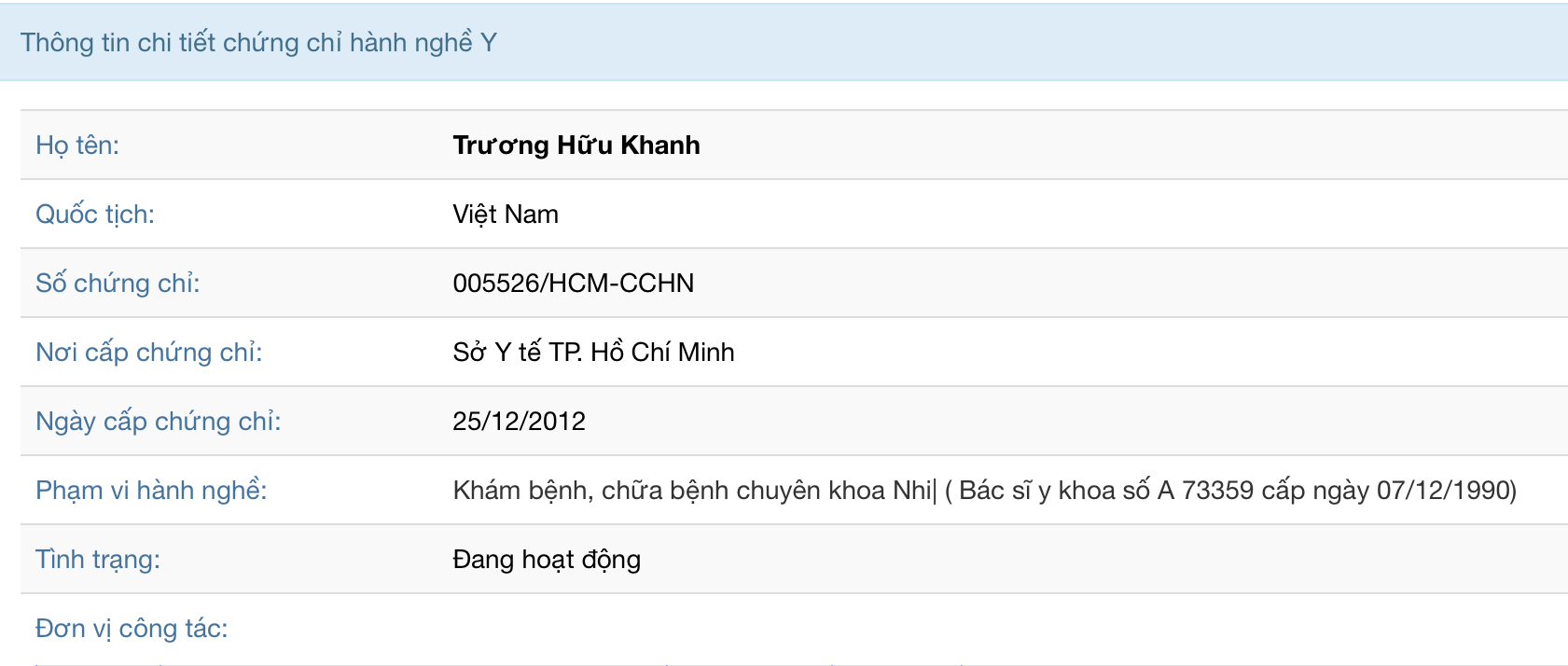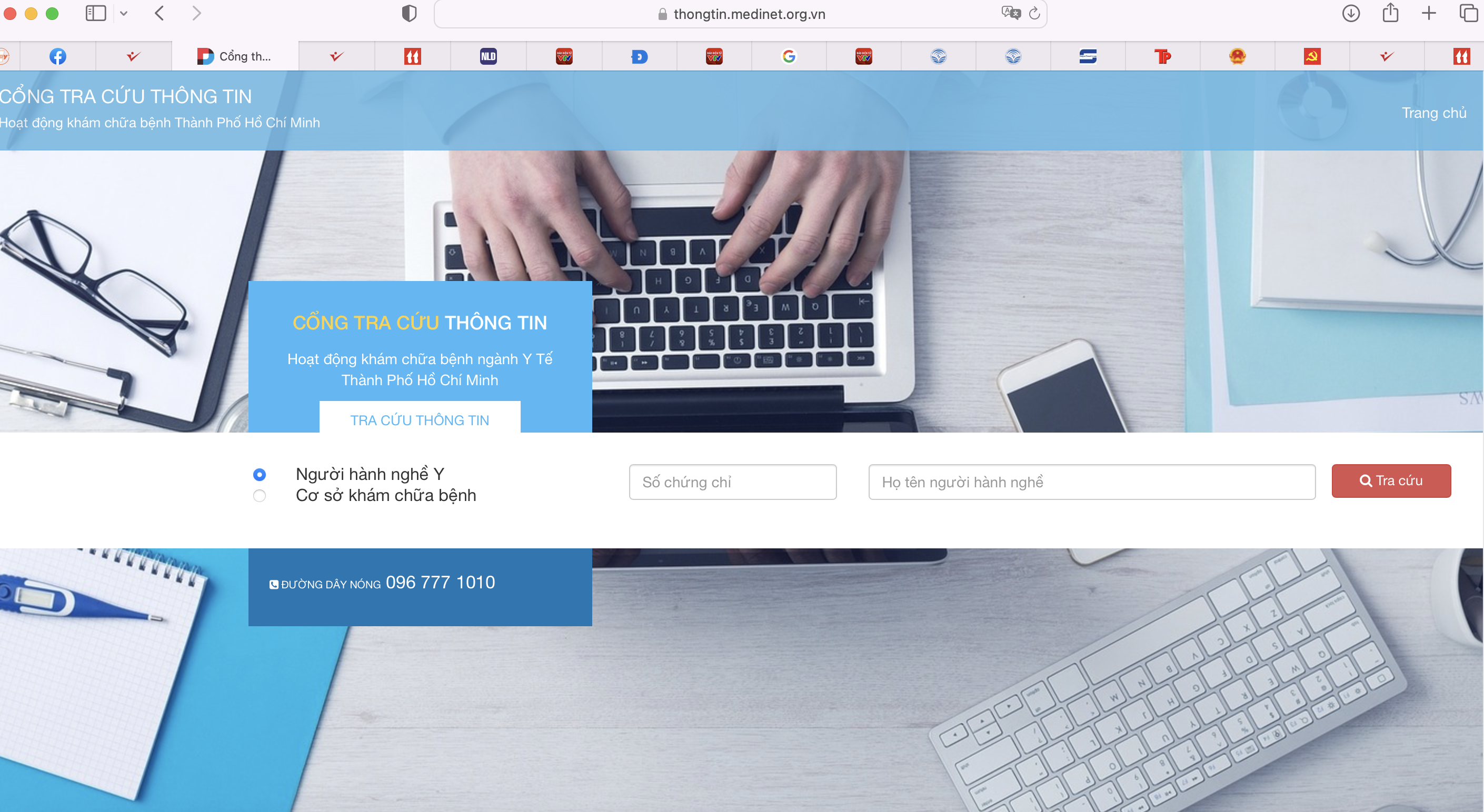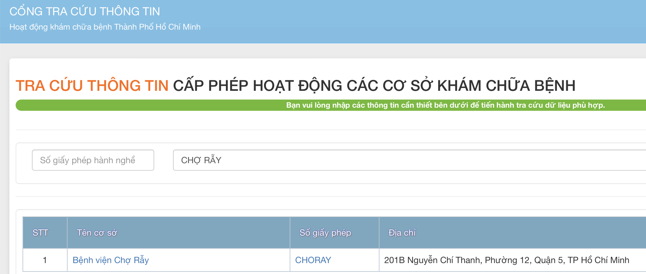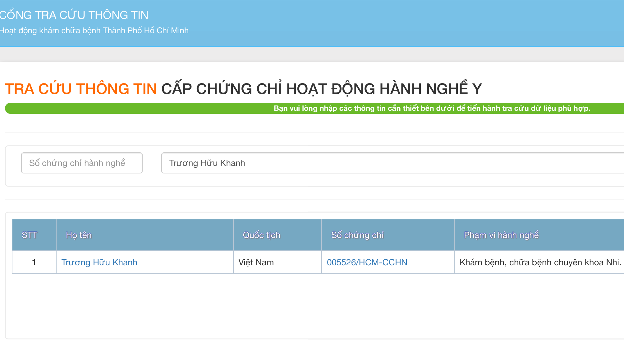 Kết quả tra cứu thông tin bác sĩ và cơ sở y tế trên địa bàn TP.HCM bằng thongtin.medinet.org.vn