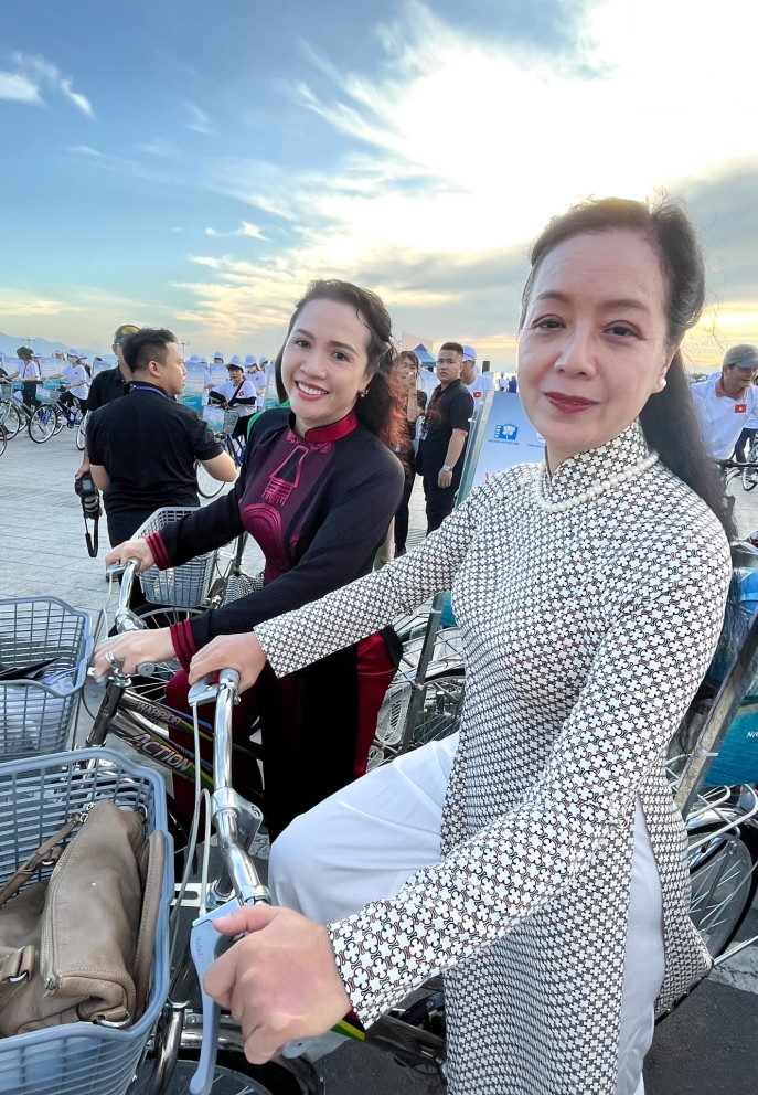 Sáng 9/9, hàng trăm người gồm các nghệ sĩ, tình nguyện viên và người dân tham gia sự kiện 'Hừng đông rực rỡ' thuộc khuôn khổ hoạt động của 'Cánh diều vàng' 2023. Vợ chồng Quyền Linh - Dạ Thảo cùng 2 cô con gái có mặt từ sớm. Quyền Linh là tổng đạo diễn của lễ trao giải năm nay nên vợ và các con bay từ TP.HCM ra để ủng hộ tinh thần anh. NSƯT Chiều Xuân vui mừng hội ngộ NSND Trà Giang - người phụ nữ chị đặc biệt kính trọng. Cả hai có dịp hàn huyên, tâm sự trong những ngày có mặt tại đây. Diễn viên Chiều Xuân và ông xã - nhạc sĩ Đỗ Hồng Quân chụp ảnh kỷ niệm với NSND Trà Giang. Chính ông xã giúp Chiều Xuân lưu lại bức hình kỷ niệm với nghệ sĩ chị yêu mến. Chiều Xuân dưới ống kính của ông xã - nhạc sĩ Đỗ Hồng Quân. Ngoài đam mê nghệ thuật, ở đời thường, chị yêu thích thể thao và gần gũi thiên nhiên. Diễn viên Kiều Trinh, Cát Phượng hào hứng vì lần đầu đạp xe cùng mọi người. Bên cạnh ý nghĩa giải thưởng, 'Cánh diều vàng' còn là dịp để các thế hệ nghệ sĩ gặp gỡ, trao đổi kinh nghiệm về nghề. Ông Đỗ Lệnh Hùng Tú – Chủ tịch Hội Điện ảnh Việt Nam cho biết Hội và các nghệ sĩ cố gắng để chung tay cho mục tiêu xây dựng Nha Trang trở thành thành phố điện ảnh đầu tiên tại Việt Nam.