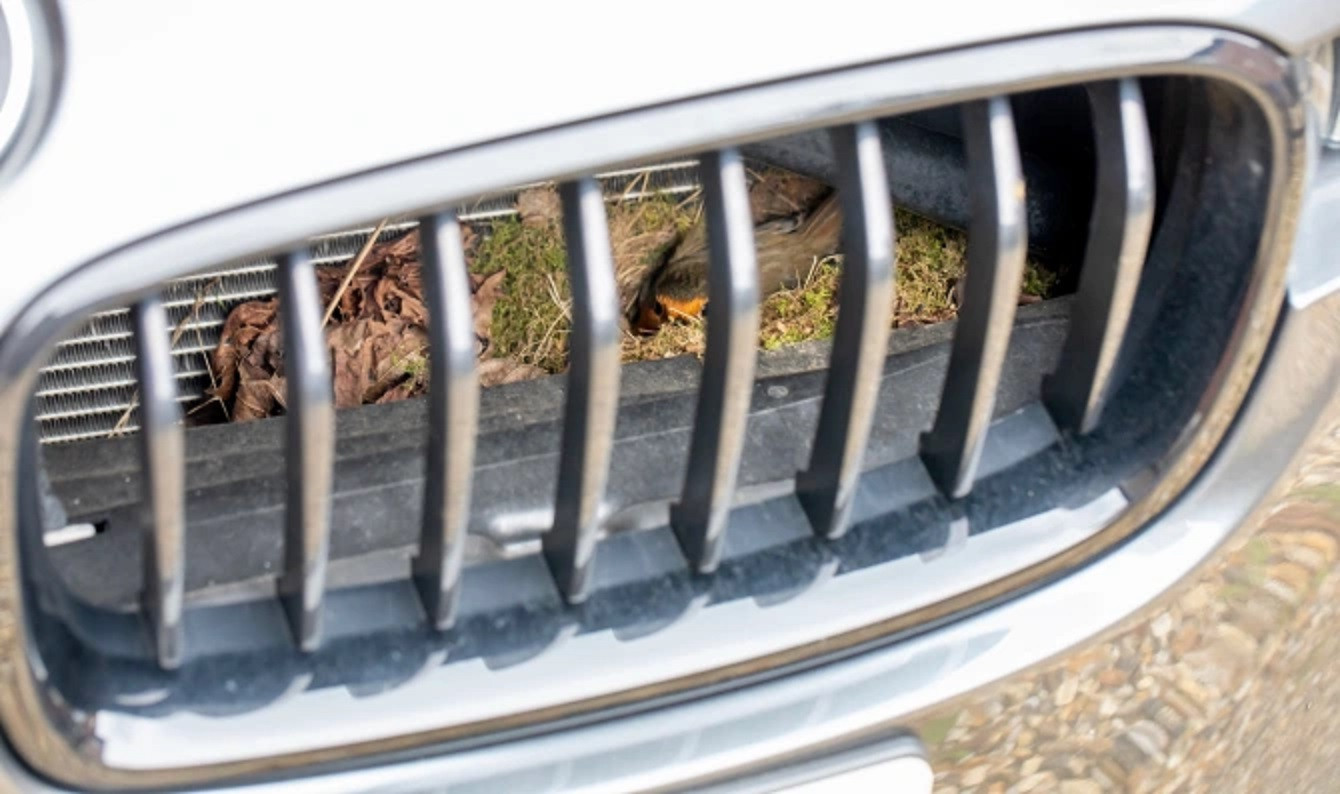 Jan Brown – một chủ xe BMW ở Anh đã không hề phát hiện ra những “hành khách” mới trên chiếc xe của mình. Mãi đến chủ nhật vừa qua, Jan Brown mới nhìn thấy tổ của chim cổ đỏ và ba quả trứng chưa kịp nở nằm bên trong lưới tản nhiệt của chiếc xe.