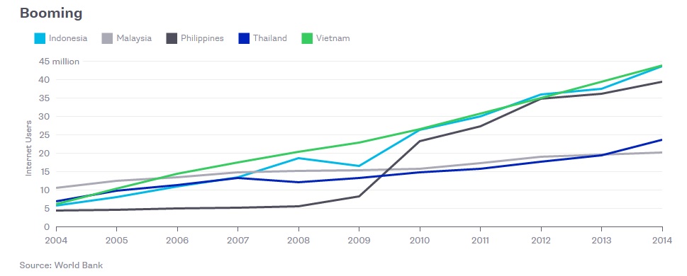 Trên rất nhiều phương diện, Đông Nam Á đang là trung tâm đầy hấp dẫn với các doanh nghiệp công nghệ: Đây là thị trường trực tuyến phát triển nhanh nhất thế giới. Khoảng 70% dân số khu vực này dưới 40 tuổi. Tốc độ tăng trưởng kinh tế nhanh. Doanh số điện thoại thông minh tăng mạnh.