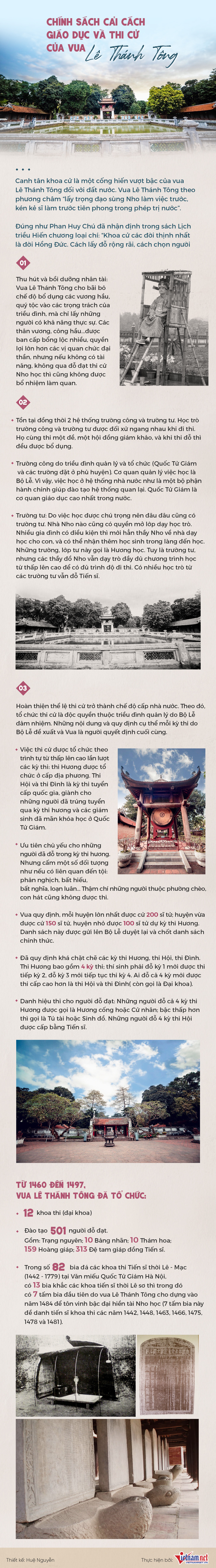Canh tân khoa cử là một cống hiến vượt bậc của vua Lê Thánh Tông đối với đất nước. Vua Lê Thánh Tông theo phương châm "lấy trọng đạo sùng Nho làm việc trước, kén kẻ sĩ làm trước tiên phong trong phép trị nước.