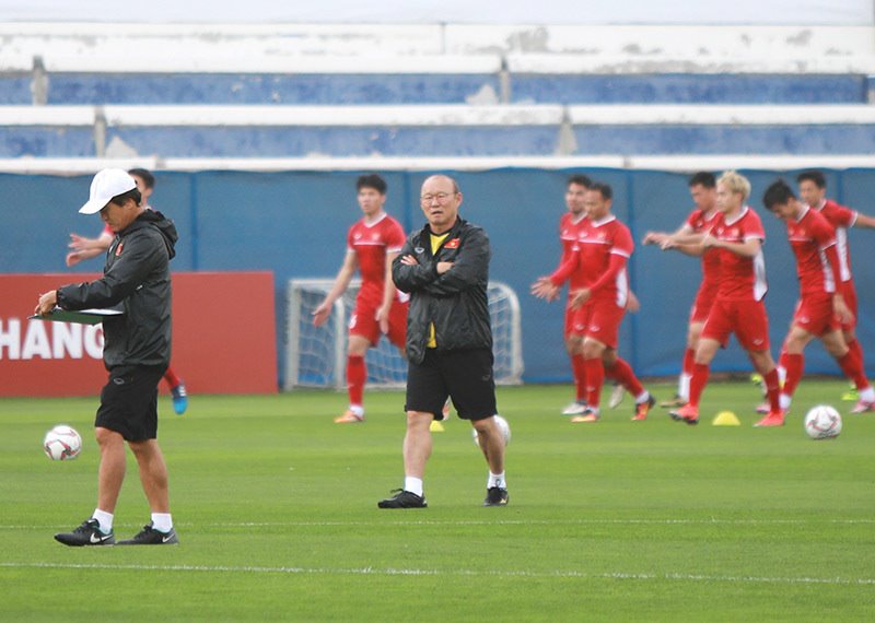Tuyển Việt Nam đang luyện tập chuẩn bị cho trận đấu Tứ kết. |