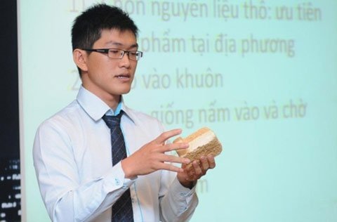| Bạn Lâm Vạn Lập giới thiệu mẫu sản phẩm vật liệu hữu cơ làm từ nấm |